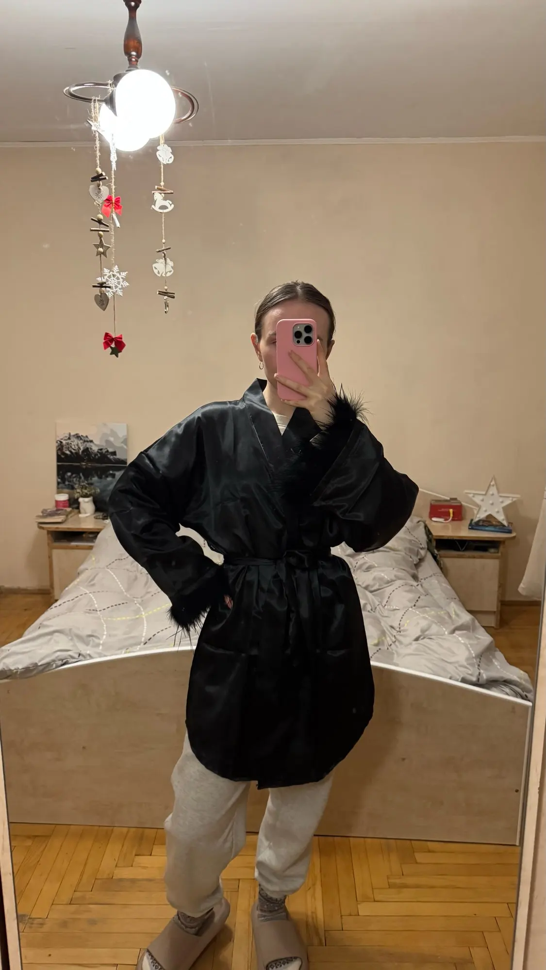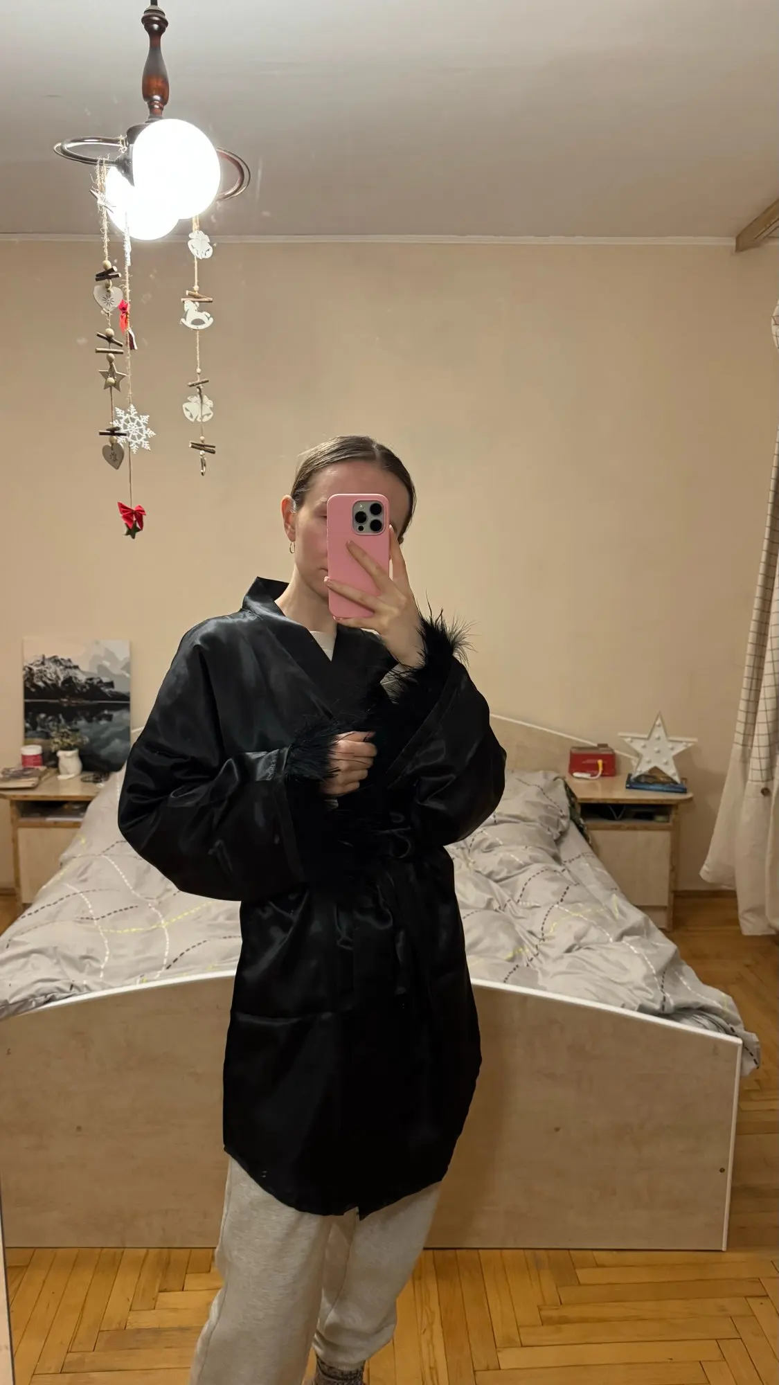 This is simply magnificent. For my height 182, the length is perfect, the feathers are sewn perfectly, the fabric is pleasant, and the tailoring is neat. I give it 10,000 ❤️ out of 10