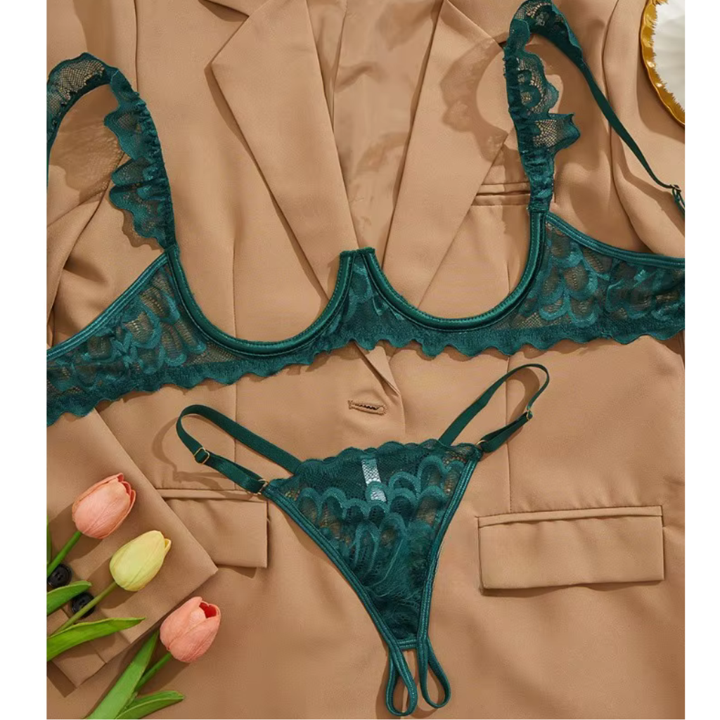 This set received on time is absolutely good. Congratulations to the creator for the bra that really supports the breasts properly, giving them a beautiful bounce, the lace pattern of the thong is charming.