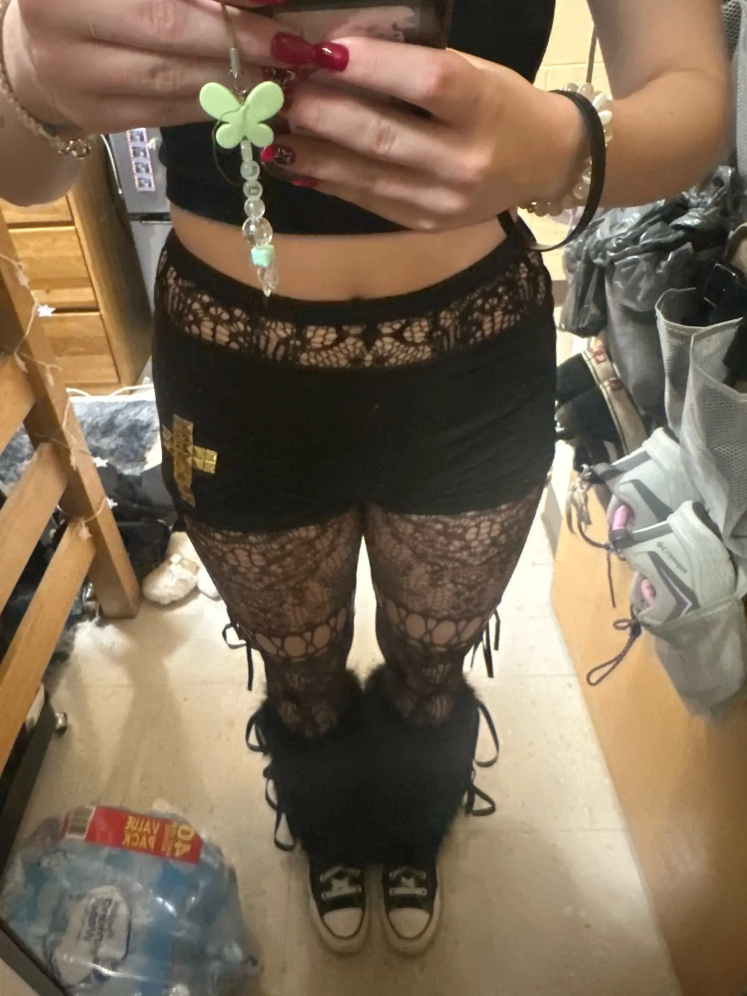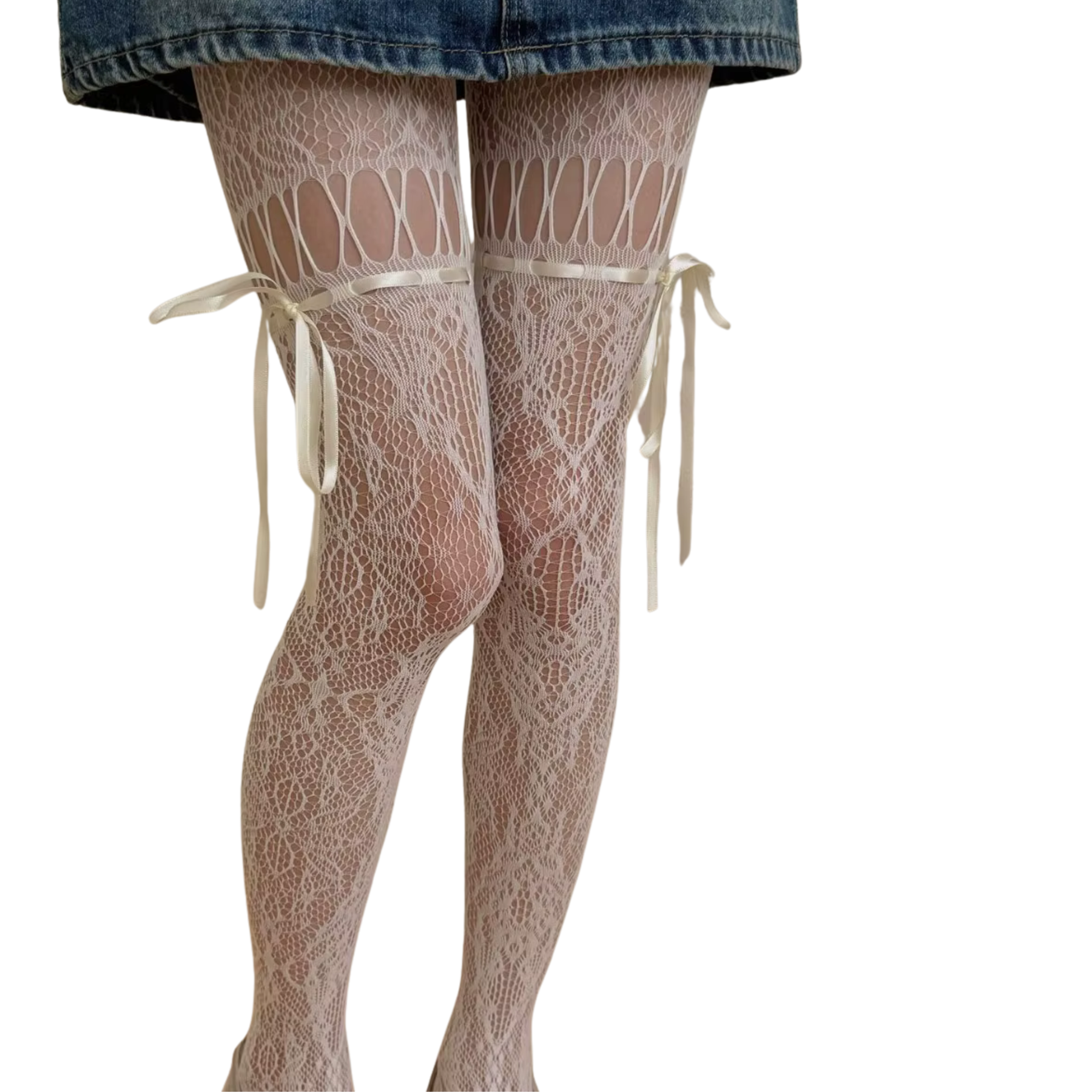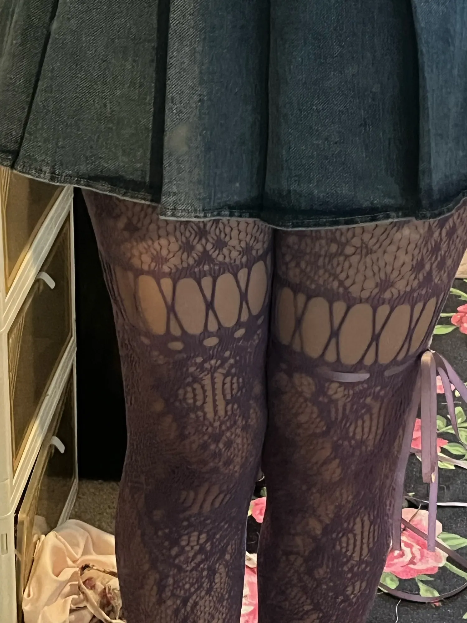 Gorgeous omfg. It looks exactly like the photo! The thread is strong and stretchy and the patterns actually look like something. Thats rare when it comes to buying online tights tbh. You do have to thread the ties yourself tho. Took me 5 mins cuz i did it around my leg lol. It looks cute and very whimsical