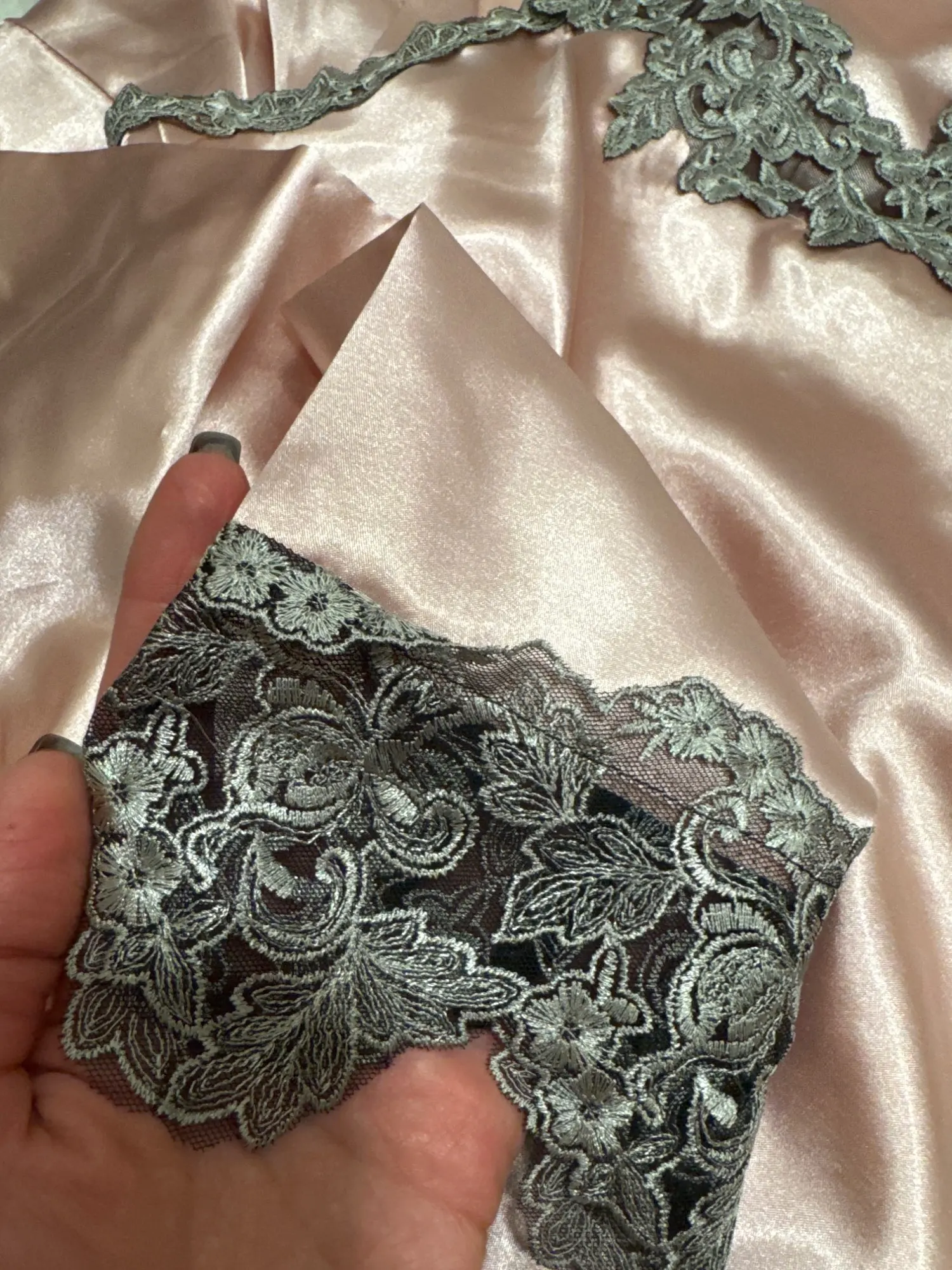 Set aus Satinnachthemd und Morgenmantel im Vintage-Stil für einen klassischen, femininen Look. Kann auch als Dessous-Nachthemd oder als elegantes Nachthemd-Set getragen werden.