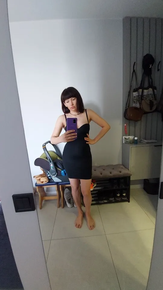 very beautiful. with a tightening effect. At 1.70 meters, it reaches somewhere around the middle of the thigh. The cup is somewhere around B. The fabric is dense, not thin, smooth. The cup has no padding.