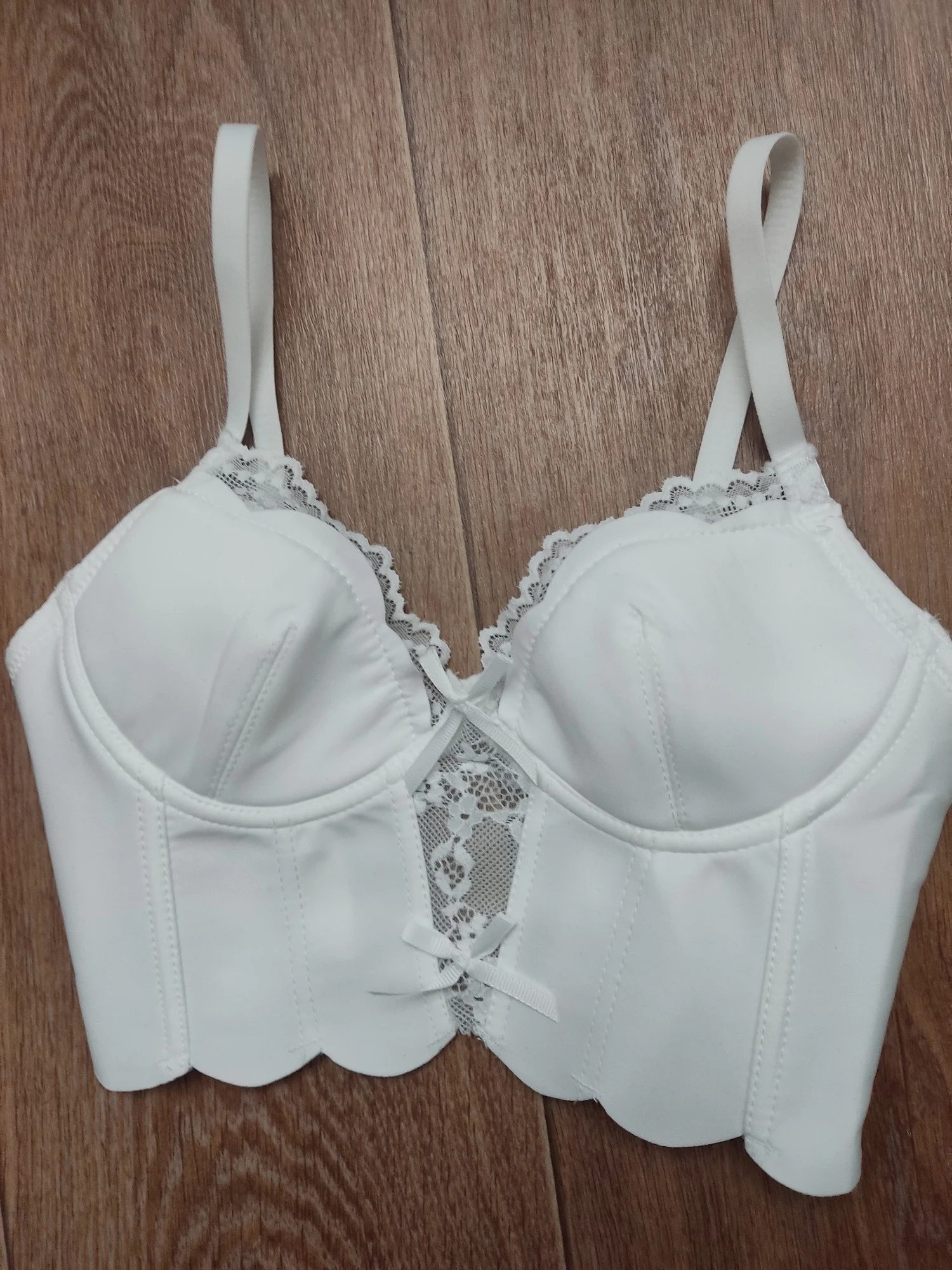 Size 32A truly fits fits 32/70A. My waist circumference is 65 cm, and my chest circumference is 78 cm (it can fit a larger chest, or you can insert cups or wear a top without them). White color!!! (not cream-colored, not cold or blue-white, but just plain white). Nice fabric, good stitching (there were a couple extra threads, but I just removed them without needing to cut anything).